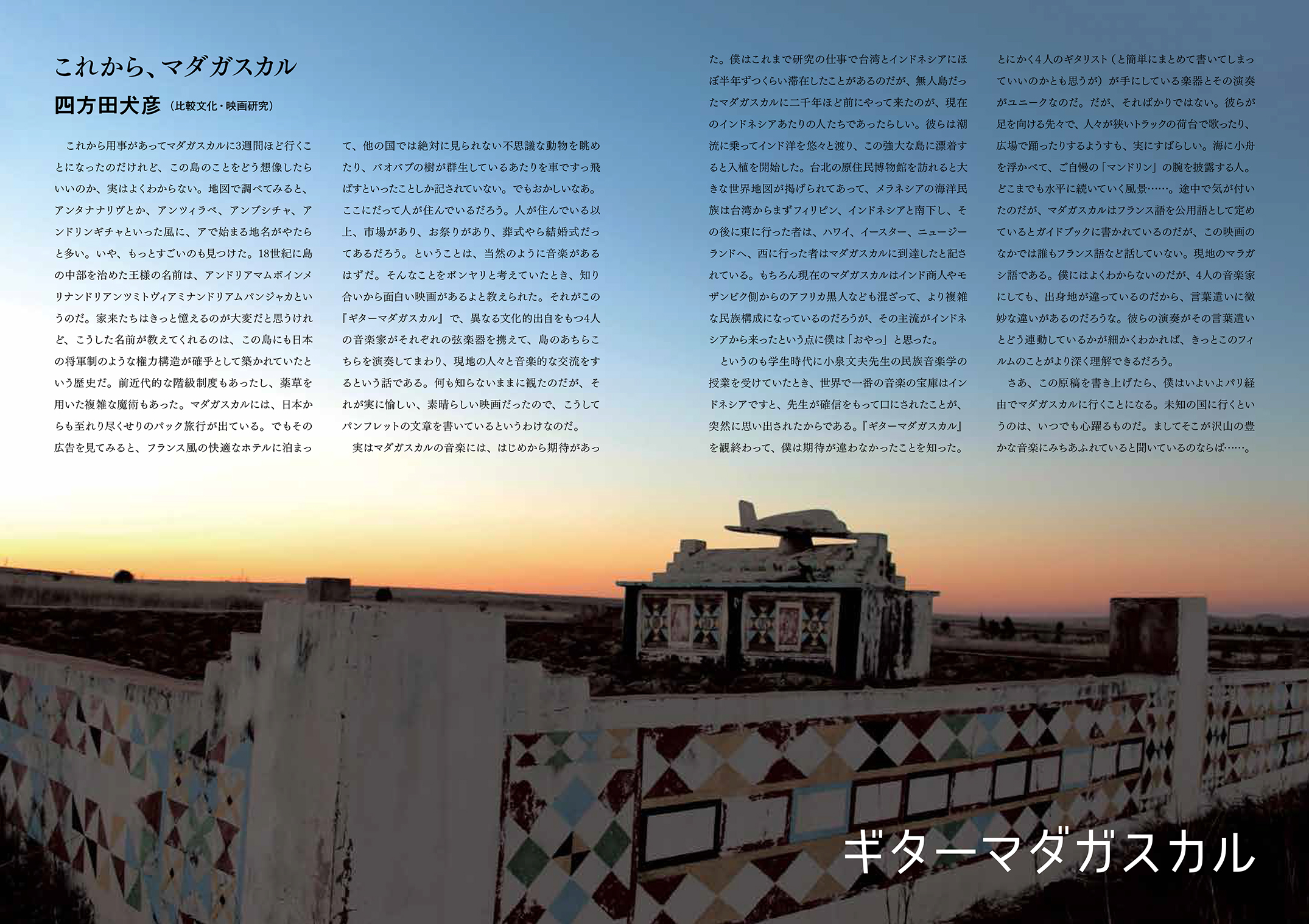 四方田犬彦さま書き下ろし巻頭言「これから、マダガスカル」を掲載。